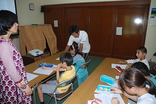 その後はタブラとのセッションで、日本チームからインド舞踊を披露していただきました。手先の動き、手首のしなやかな動き、首の動き、表情など、繊細な踊りです。手の甲をくるっと返して手のひらから指先へ、動きは体の末端まで波のように伝わっていきます。PNCAのみなさんからも拍手が起こりました。最後は質問コーナーです。疑問についてアシフ先生に聞いて、明らかにすることができました。聞くのはやっぱり緊張するけど、勇気を持って質問した子どもたちの表情からは充実感が垣間見られます。「アーブカボホットボホットシュークリア(本当にありがとうございました)」というあいさつをして、記念写真をとってお別れしました。
